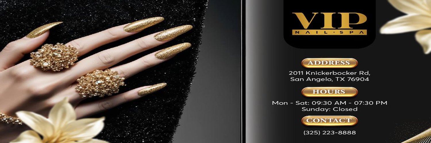 VIP Nail Spa - Nail Salon Knickerbocker Rd, San Angelo, TX 76904. Experience professional nail care and a relaxing atmosphere at VIP Nail Spa — your trusted nail salon in San Angelo.