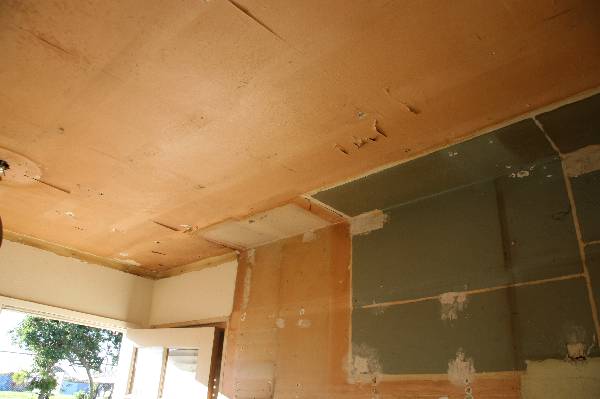 Repairing the wall and ceiling where the cubbards attached.