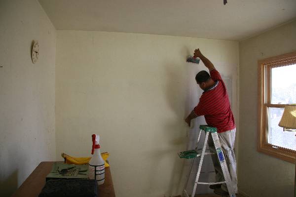 Scraping wallpaper is a tough job, especially when it was originally put up on the wall by the experienced Carl and Peggy Miesse in 1982, in honor of their new granddaughter, Katharine.